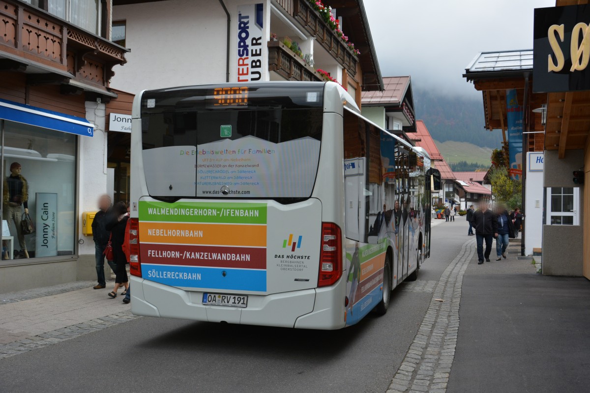 OA-RV 191 fährt am 11.10.2015 auf der Linie 9000 zur Nebelhornbahn. Aufgenommen wurde ein Mercedes Benz Citaro der 2. Generation / Innenstadt von Oberstdorf.