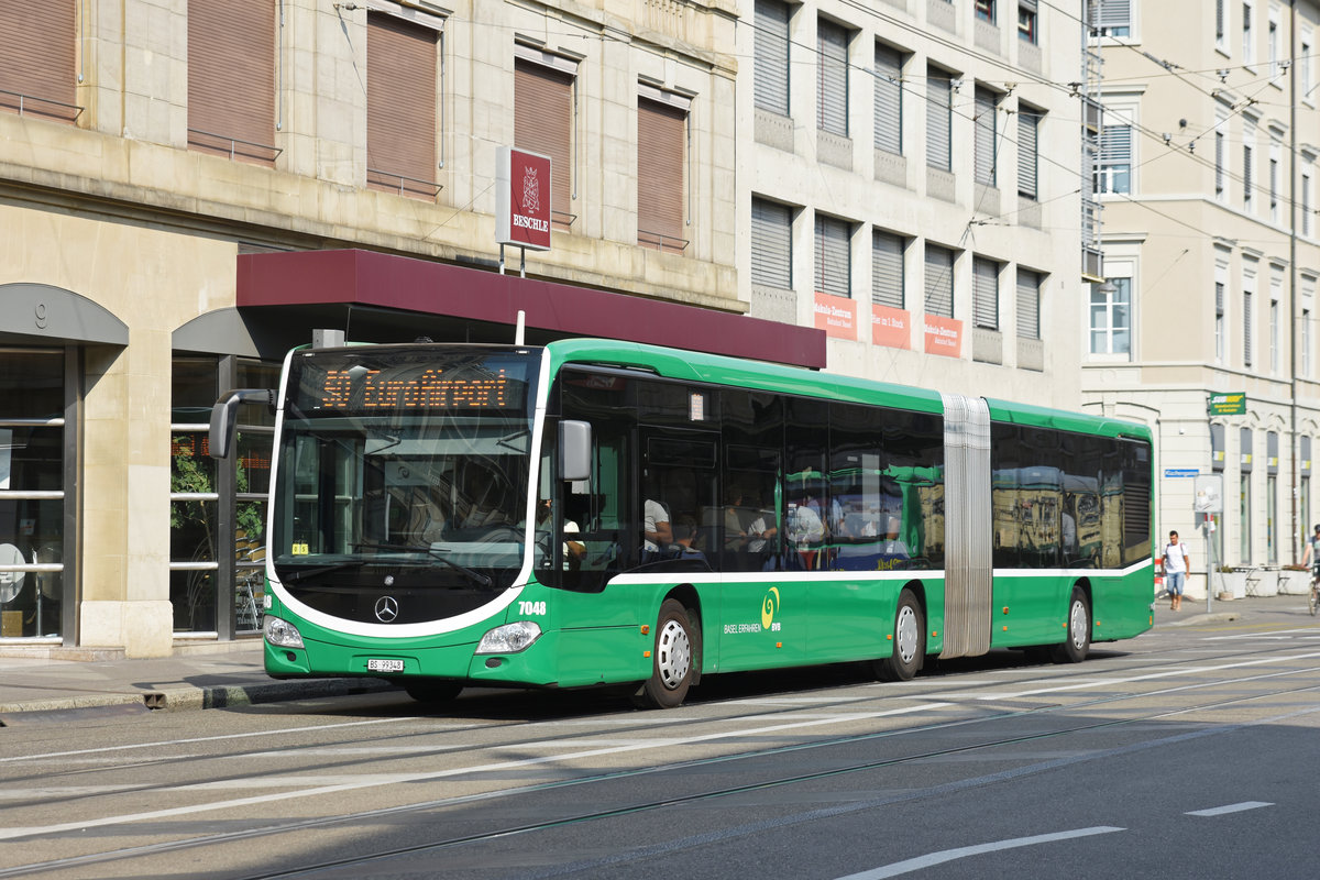 Mercedes Citaro 7048, auf der Linie 50, verlässt die Endhaltestelle am Bahnhof SBB. Die Aufnahme stammt vom 06.08.2018.