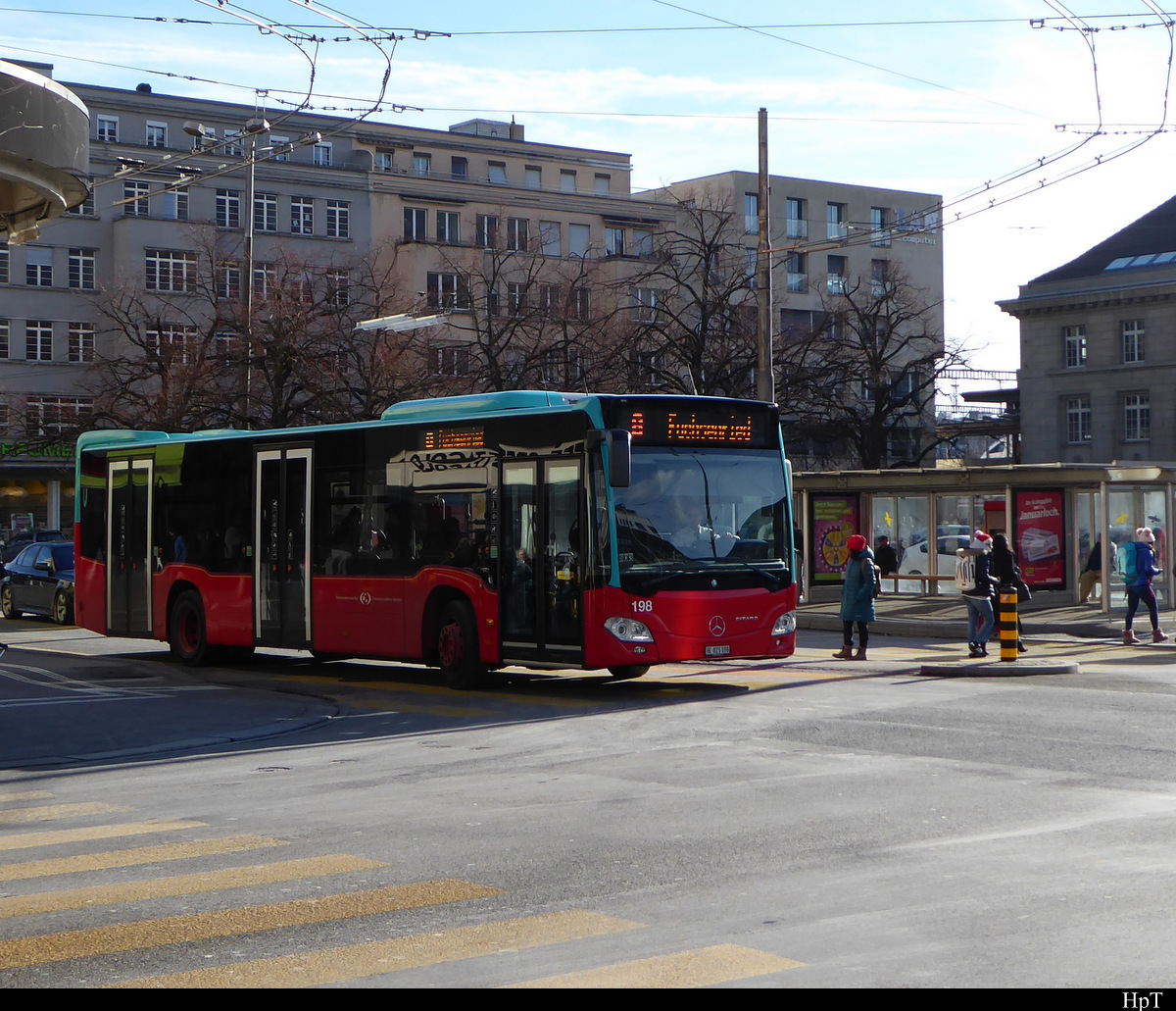 VB Biel - Mercedes Citaro Nr.198 BE 821198 Unterwegs auf der Linie 8 in der Stadt Biel am 18.01.2019