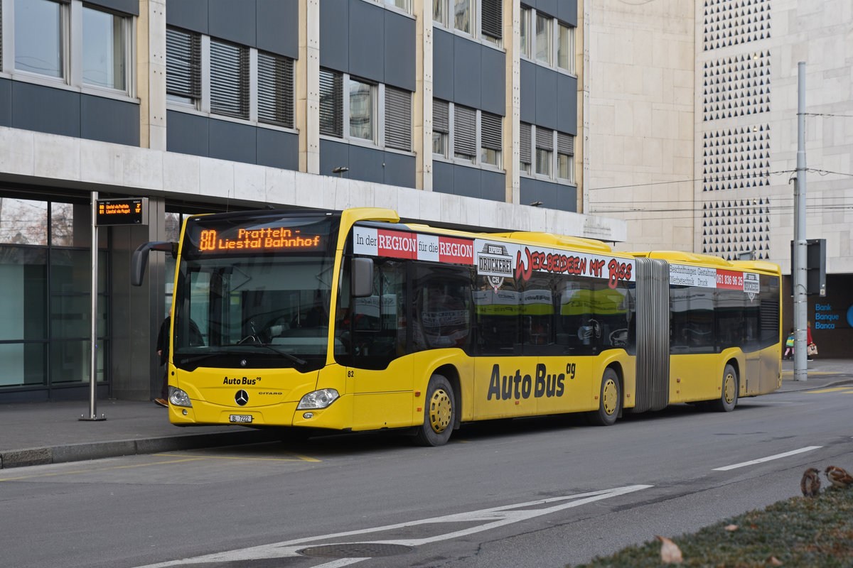 Mercedes Citaro 82 der AAGL, auf der Linie 80, wartet an der Endstation am Aeschenplatz. Die Aufnahme stammt vom 23.01.2019.