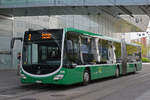 Wegen Bauarbeiten am Bahnhof SBB werden diverse Linien umgeleitet oder verlängert. Die Linie 2 wird vollständig mit Bussen betrieben. Hier wartet der Mercedes Citaro 7018 an der Endhaltestelle am Messeplatz. Die Aufnahme stammt vom 16.04.2019.