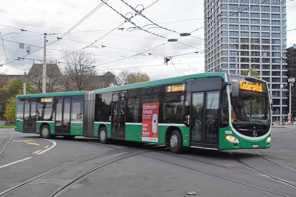 Mercedes Citaro 7034, auf der Linie E30, fährt zur Endstation am Bahnhof SBB. Die Aufnahme stammt vom 07.11.2019.