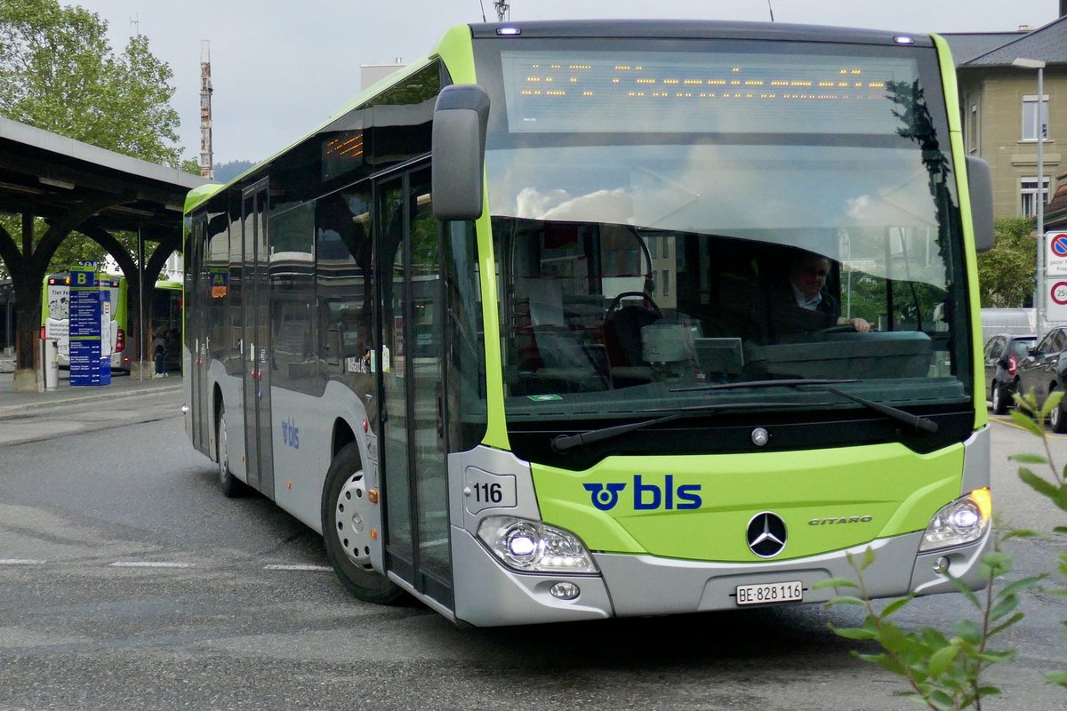 MB C2 116 der Busland AG am 13.5.20 beim verlassen des Bhf Burgdorf