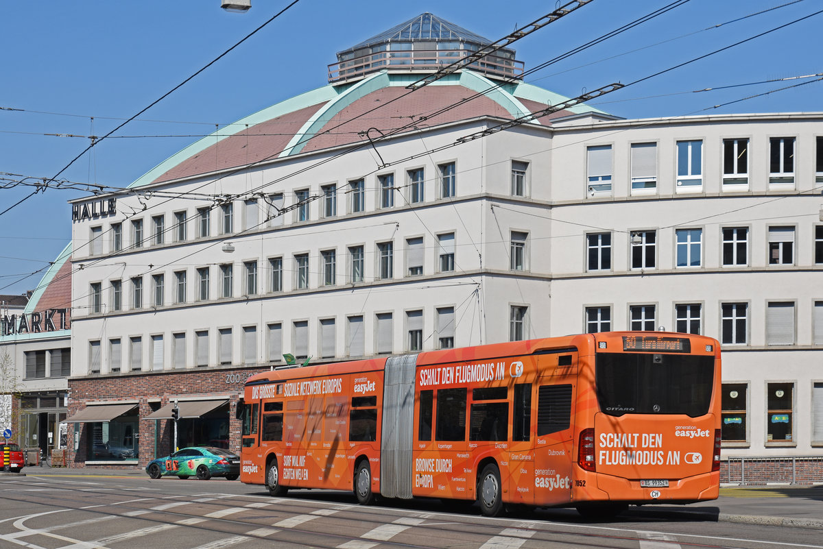 Mercedes Citaro 7052 mit der easy Jet Werbung, auf der Linie 50, fährt zur Haltestelle Brausebad. Die Aufnahme stammt vom 03.04.2020.