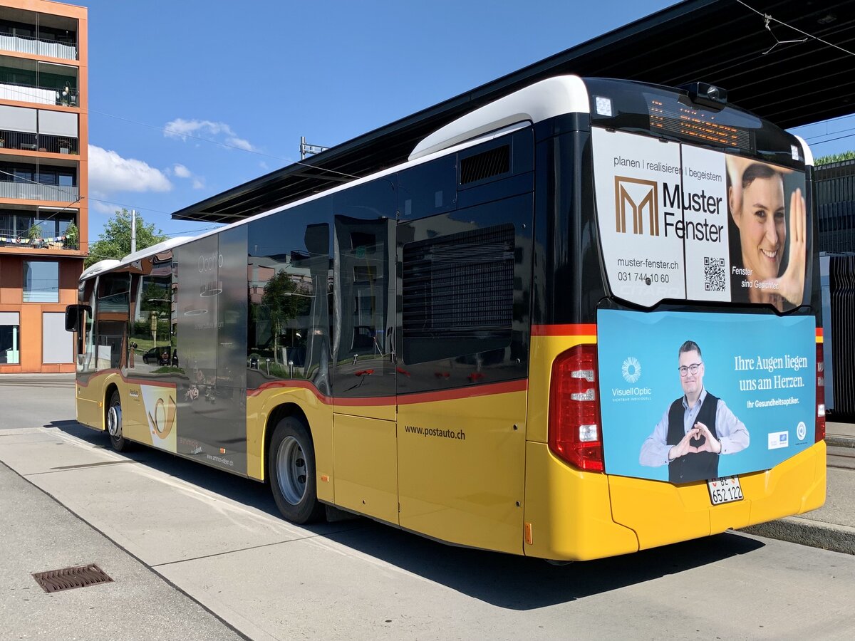 Heckansicht des MB C2 hybrid '11462' von PostAuto Regie Laupen am 29.7.21 beim Bhf Brünnen Westside.