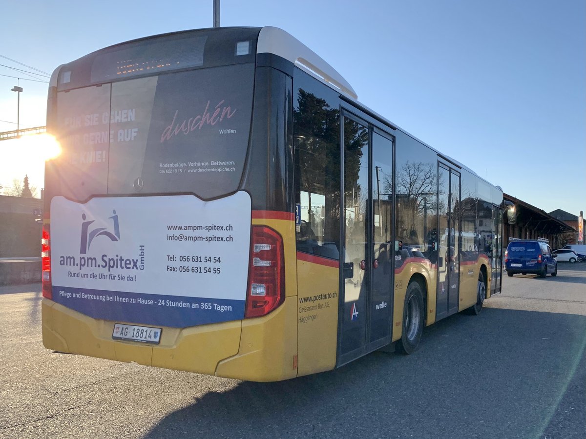 MB C2 K '10694' "Wohlen" von Geissmann Bus, Hägglingen am 24.3.21 bei der Abfahrt hinter dem Bahnhof Wohlen.