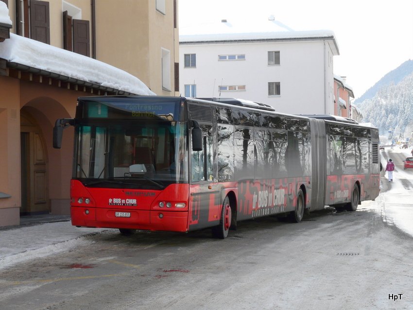Neoplan GR 155855 aushilfsweise auf der Linie 1 bei der Haltestelle vor dem Bahnhof von Samedan am 01.01.2010