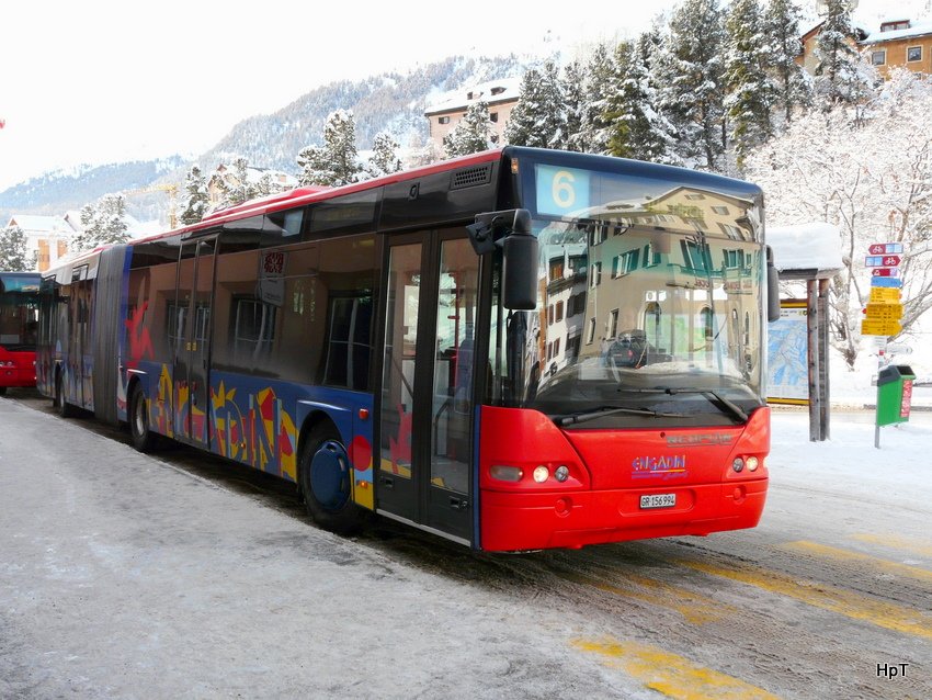 Neoplan GR 156944 unterwegs auf der Linie 6 bei der Haltestelle vor dem Bahnhof Samedan am 01.01.2010
