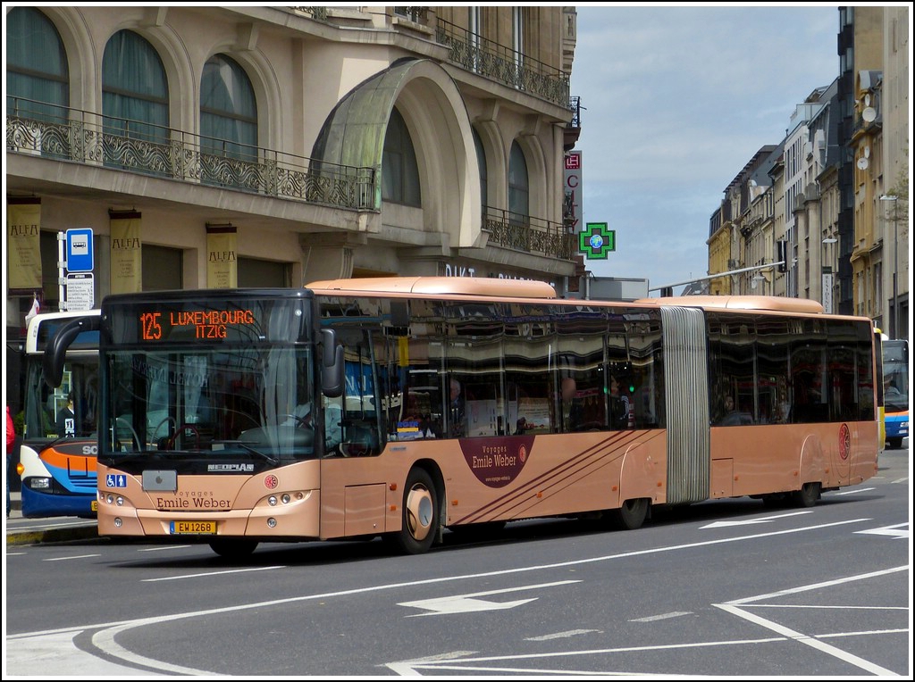 (EW 1268) Am 30.04.2012 wurde dieser Neoplan, der Busfirma Emil Weber, von mir in der Nähe des Bahnhofs von Luxemburg aufgenommen
