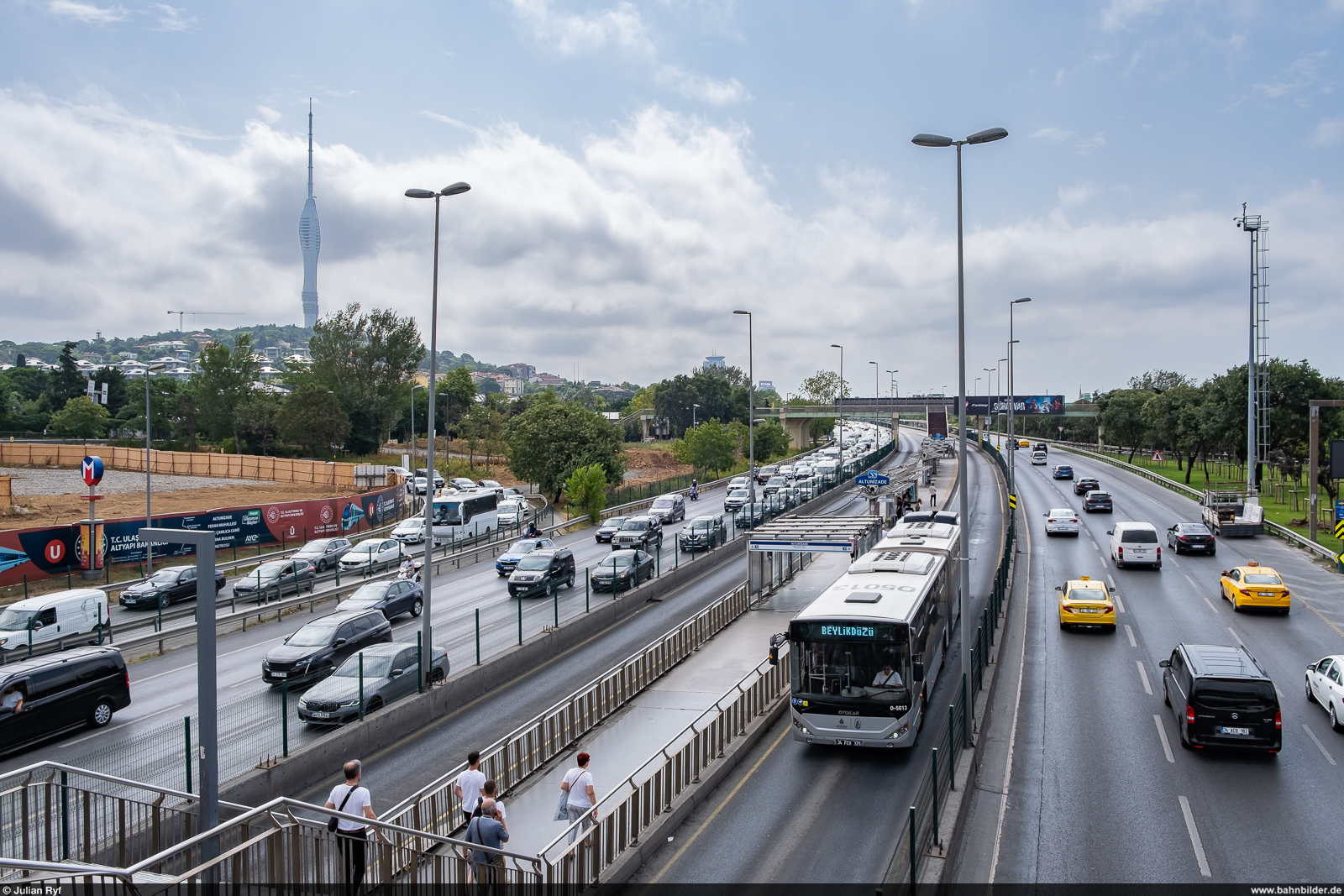 Der Metrobüs Istanbul verkehrt grösstenteils in der Mitte der Autobahn. Aufgrund der Mittelperrons verkehren die Busse im Linksverkehr. Julian Ryf