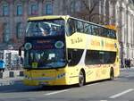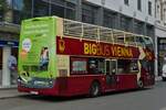 Gelber UNVI Doppelstockbus auf Stadtrundfahrt unterwegs in der Stadt Wien am 17.09.2025
