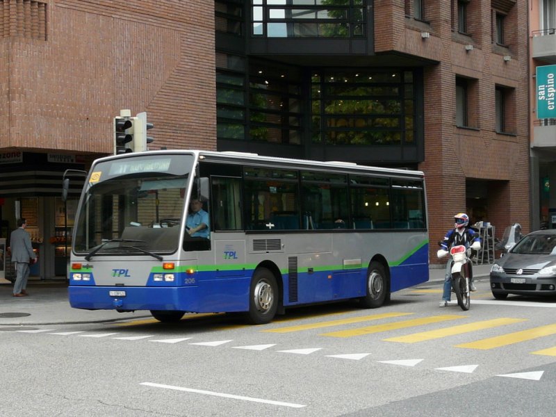 TPL - VanHool Nr.206 TI 139522 unterwegs auf der Linie 11 in der Stadt Lugano am 13.05.2009