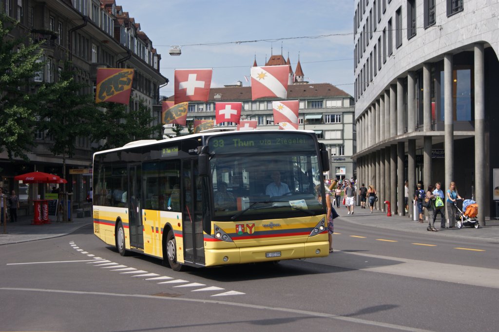 Van Hool Bus mit der Betriebsnummer 5 auf der Linie 33 fährt am Bahnhof Thun ein. Die Aufnahme stammt vom 04.08.2012.