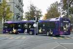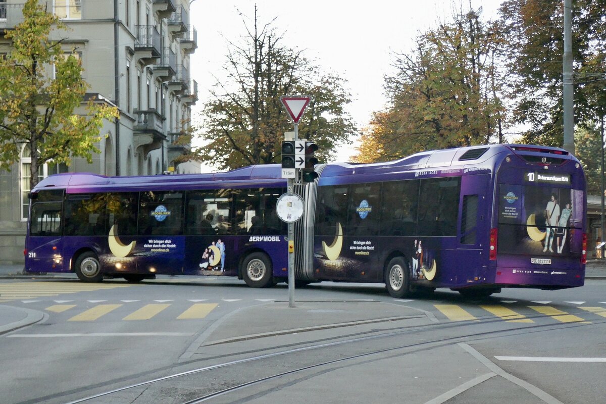 BERNMOBIL Volvo 7900 Hybrid 211 mit neuer Moonliner Werbung am 19.10.22 in Bern.