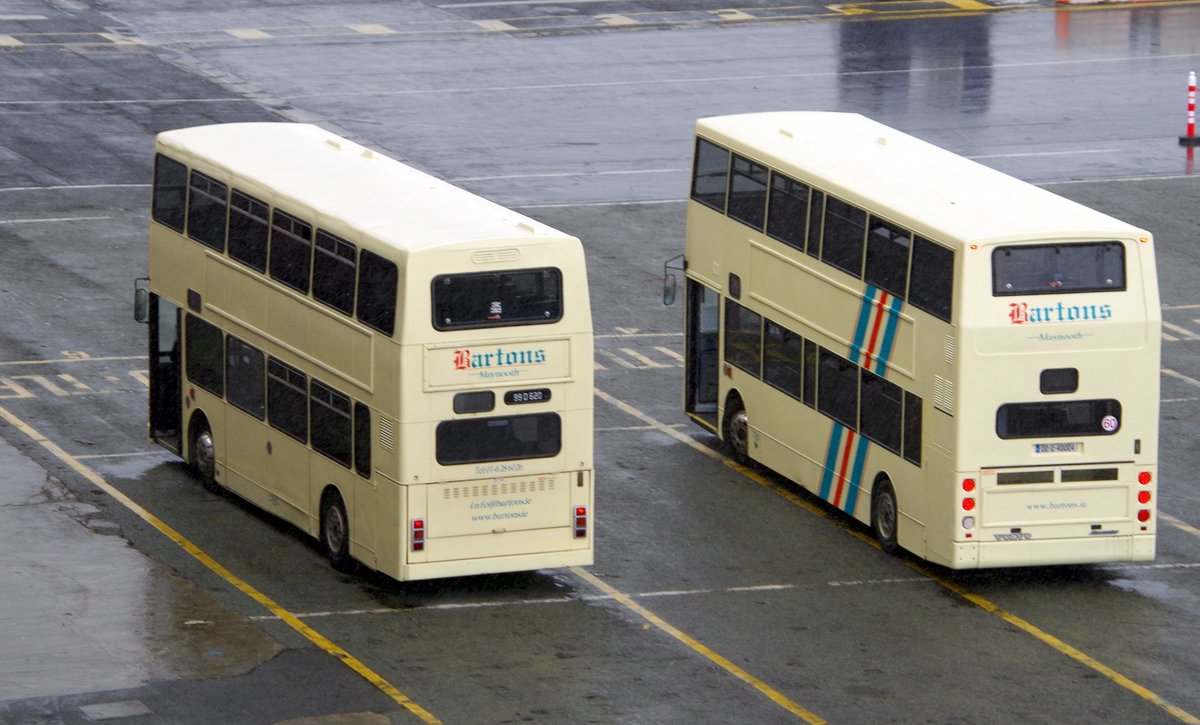 Zwei Volvo Doppeldecker Stadtbusse am 03.06.17 im Hafen von Dublin