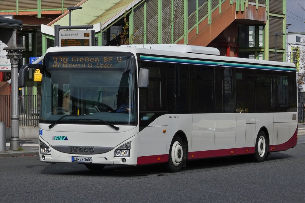 . Iveco Crossway fährt am 30.09.2017 in den Busbahnhof von Gießen ein.