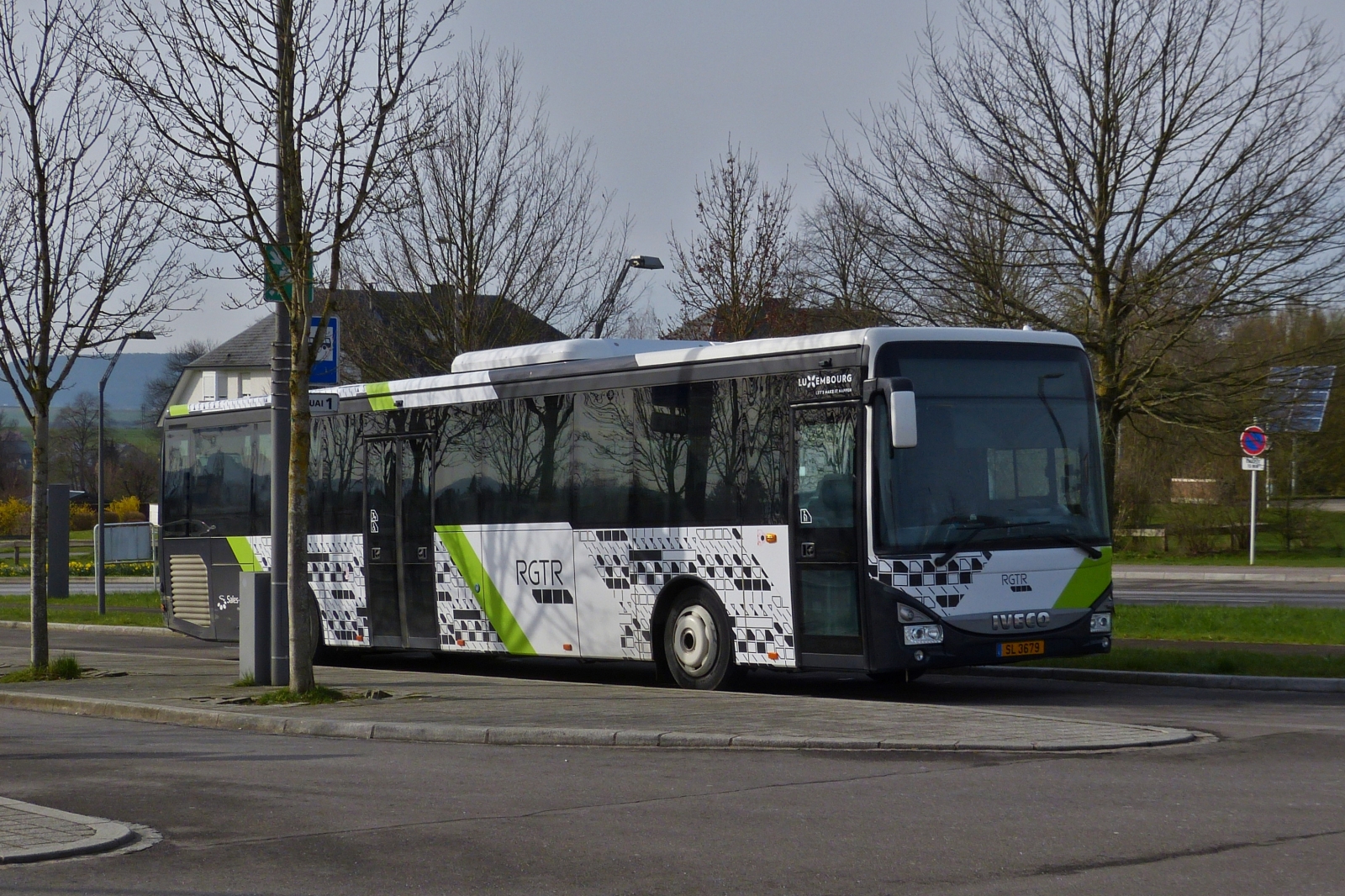 SL 3679. Iveco Crossway, von Sales Lentz, steht an der Bushaltestelle Redange sur Attert Lycée. 03.2023
