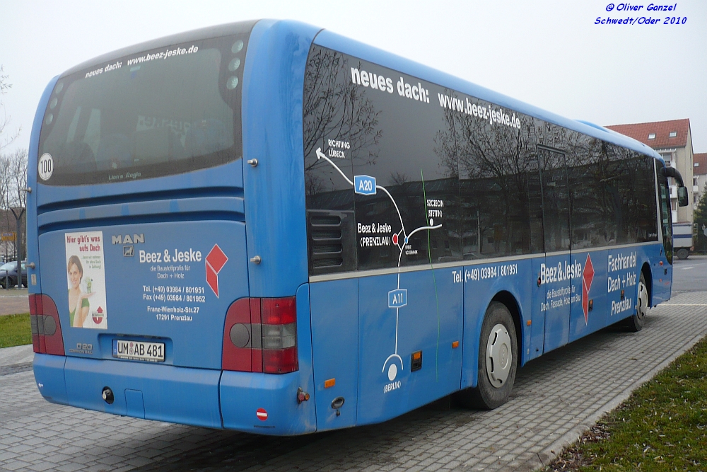 MAN ÜL 314 Lion's Regio des Busunternehmen Lutz Koppermann aus Brüssow (Uckermark), 2010 in Schwedt/Oder.