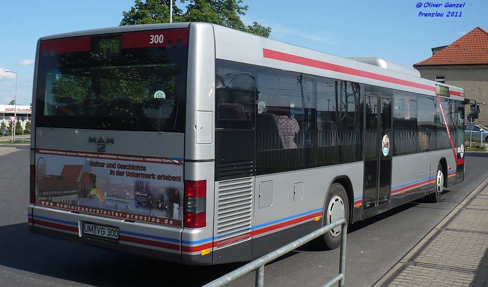 MAN NÜ 313, Wagennummer 300, der Uckermärkischen Verkehrsgesellschaft mbH, 2011 beim ZOB Prenzlau.