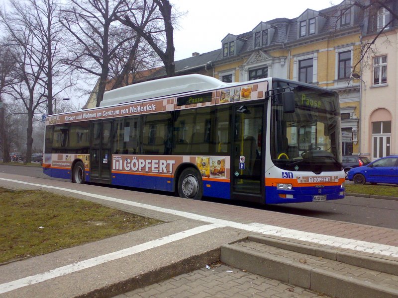 BLK-V1000, ein MAN Lion´s City Ü CNG, am 5.03.2009 auf dem Busbahnhof in Weißenfels. Er macht gerade Pause.