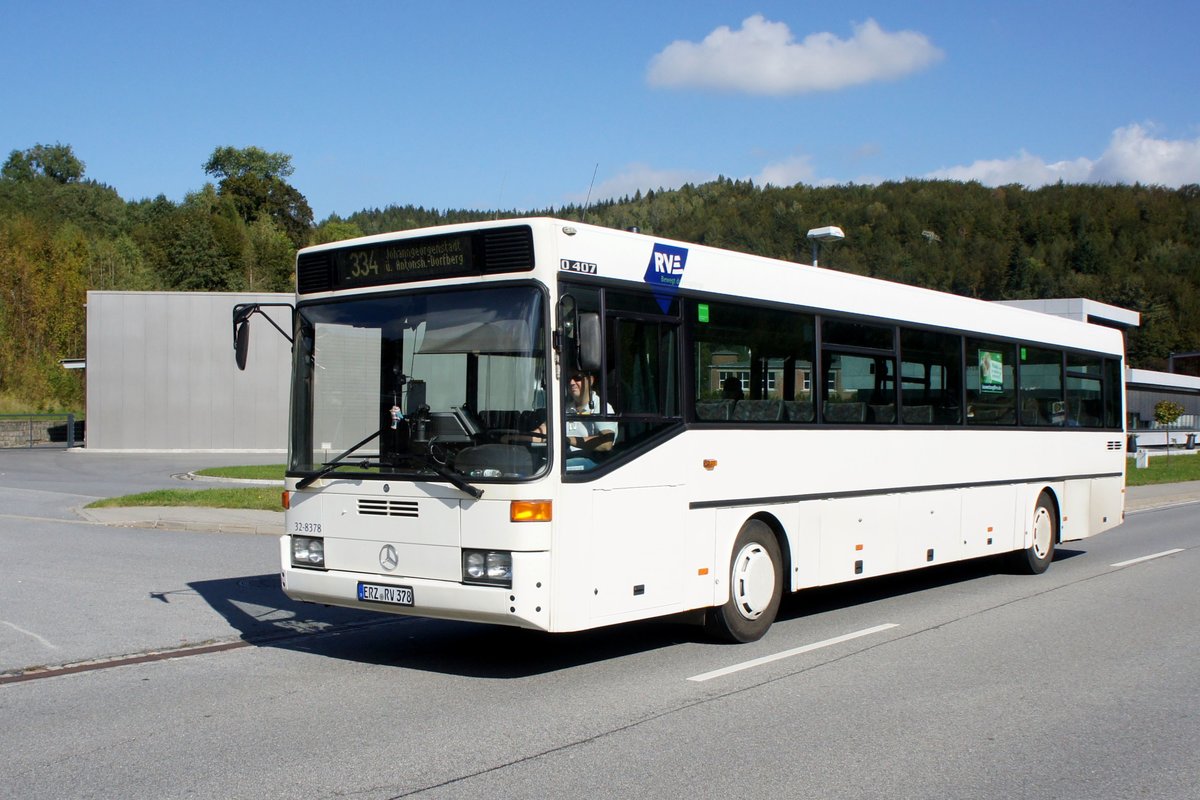 Bus Erzgebirge: Mercedes-Benz O 407 (ERZ-RV 378) der RVE (Regionalverkehr Erzgebirge GmbH), aufgenommen im September 2020 in Antonsthal, einem Ortsteil von Breitenbrunn / Erzgebirge.