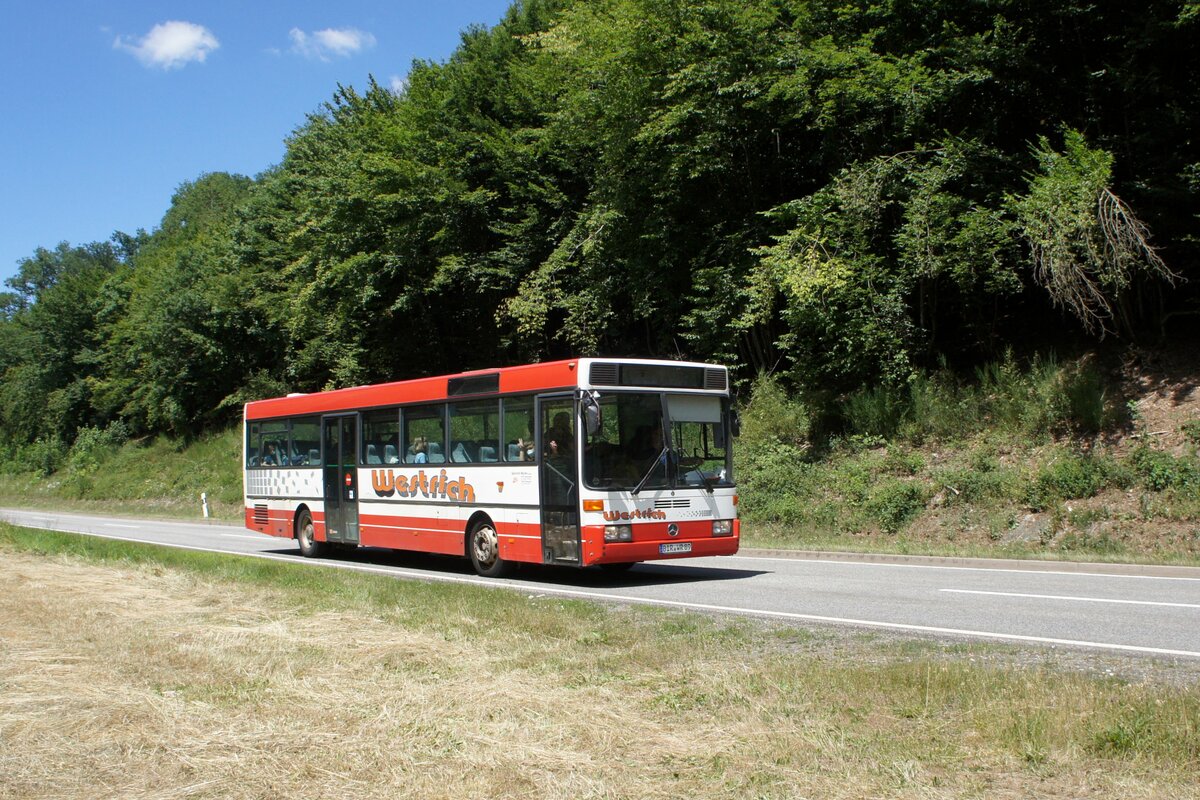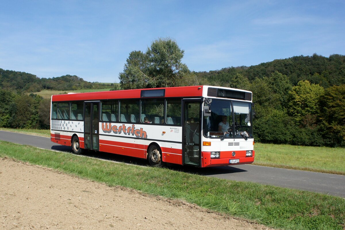 Bus Rheinland-Pfalz: Mercedes-Benz O 407 (BIR-WR 50) vom Omnibusbetrieb Westrich Reisen GmbH, aufgenommen im September 2021 in der Nähe von Herrstein, einer Ortsgemeinde im Landkreis Birkenfeld.