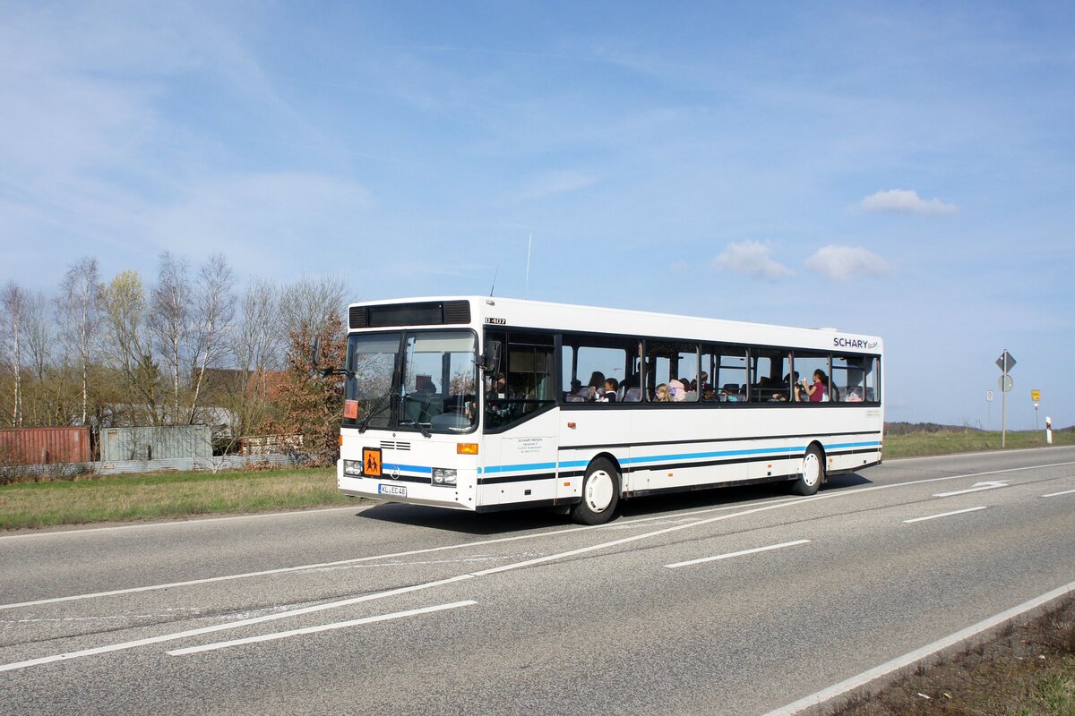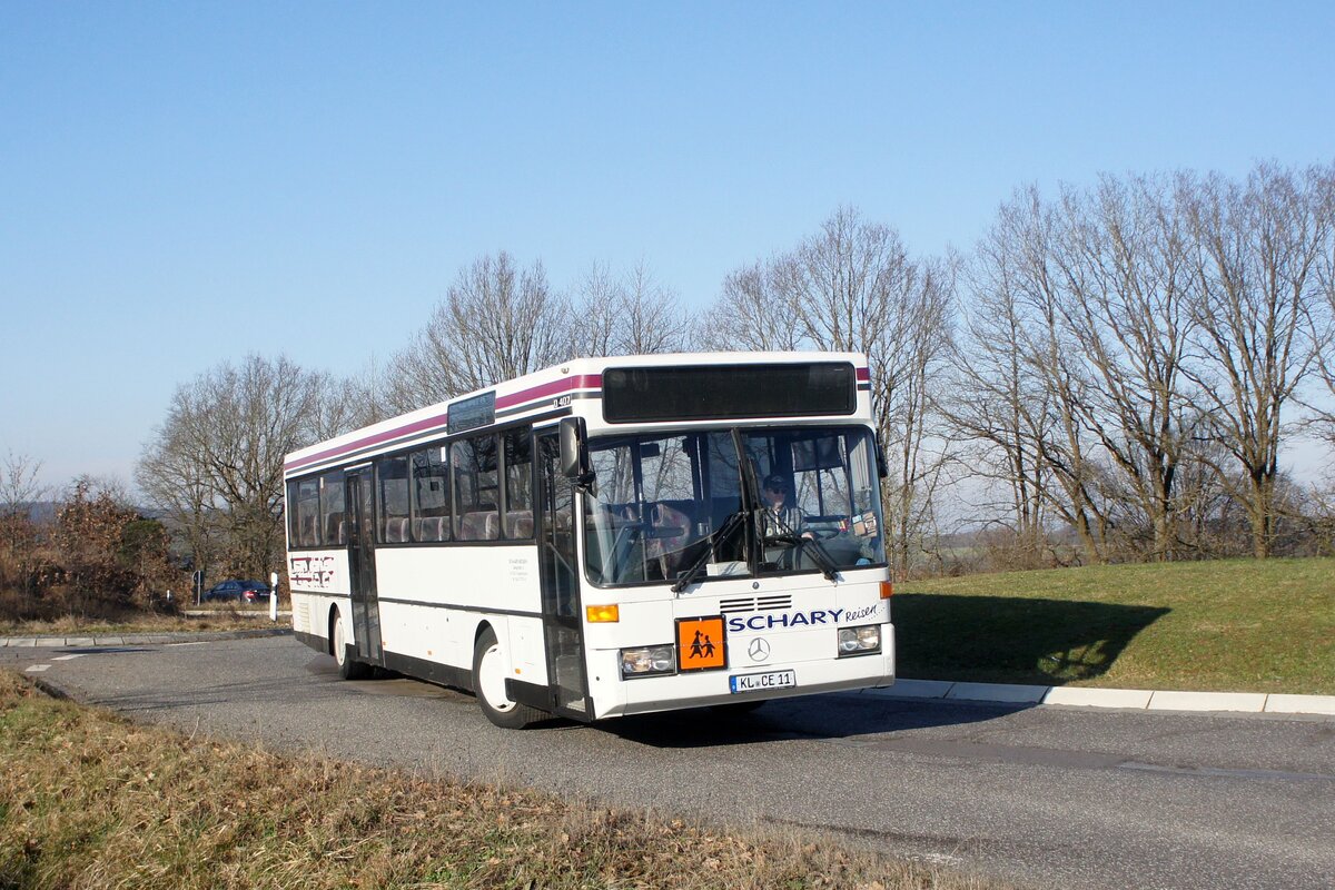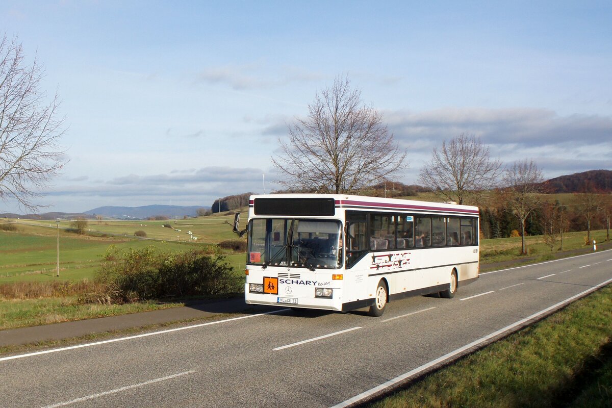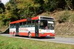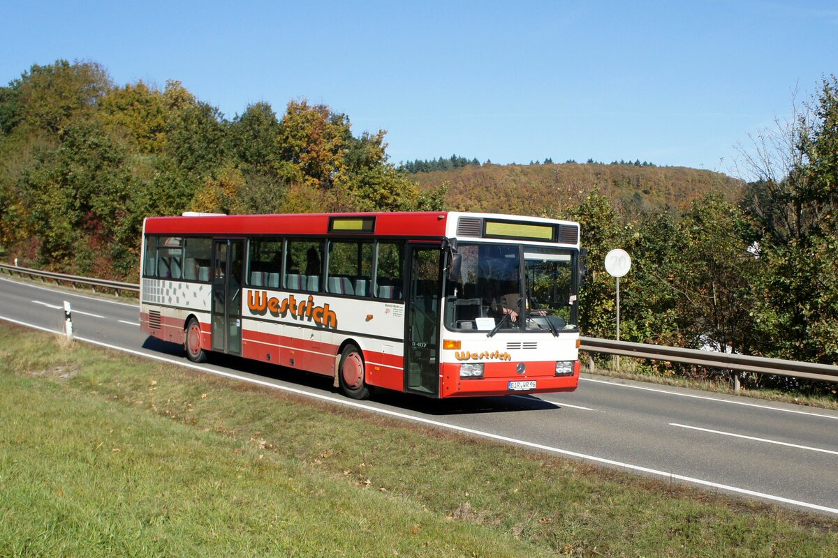 Bus Rheinland-Pfalz: Mercedes-Benz O 407 (BIR-WR 96) vom Omnibusbetrieb Westrich Reisen GmbH, aufgenommen im Oktober 2021 in der Nähe von Herrstein, einer Ortsgemeinde im Landkreis Birkenfeld.