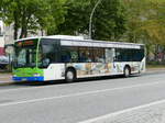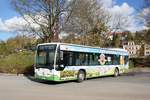 Bus Stollberg / Bus Erzgebirge: Mercedes-Benz Citaro Ü (in der Lackierung der Freiburgischen Verkehrsbetriebe Holding (TPF) AG / Fribourg) der Firma Reisedienst Gerhart Kaiser GmbH aus Zwickau (im Auftrag der RVE - Regionalverkehr Erzgebirge GmbH). Aufgenommen im April 2018 am Bahnhof von Stollberg / Erzgebirge.