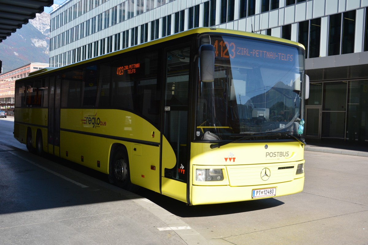 Am 12.10.2015 steht PT-12480 am Bahnhof Innsbruck Hauptbahnhof. Aufgenommen wurde ein Mercedes Benz Integro / Postbus.