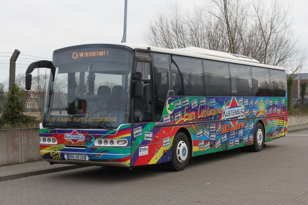 Werbe Neoplan Euroliner stand am 29.12.2015 in Höhe Rostock Hauptbahnhof/Süd abgestellt.