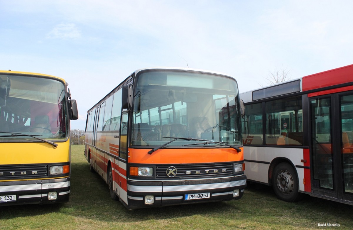 11. April 2015 der ehemalige Setra S215UL der EVB Zeven auf dem Domstiftgut Mötzow.