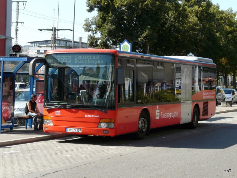 Südbadenbus - Setra 315 NF FR:JS 357 unterwegs auf der Linie 7353 bei den Haltestellen vor dem Bahnhof in Singen am 31.08.2009