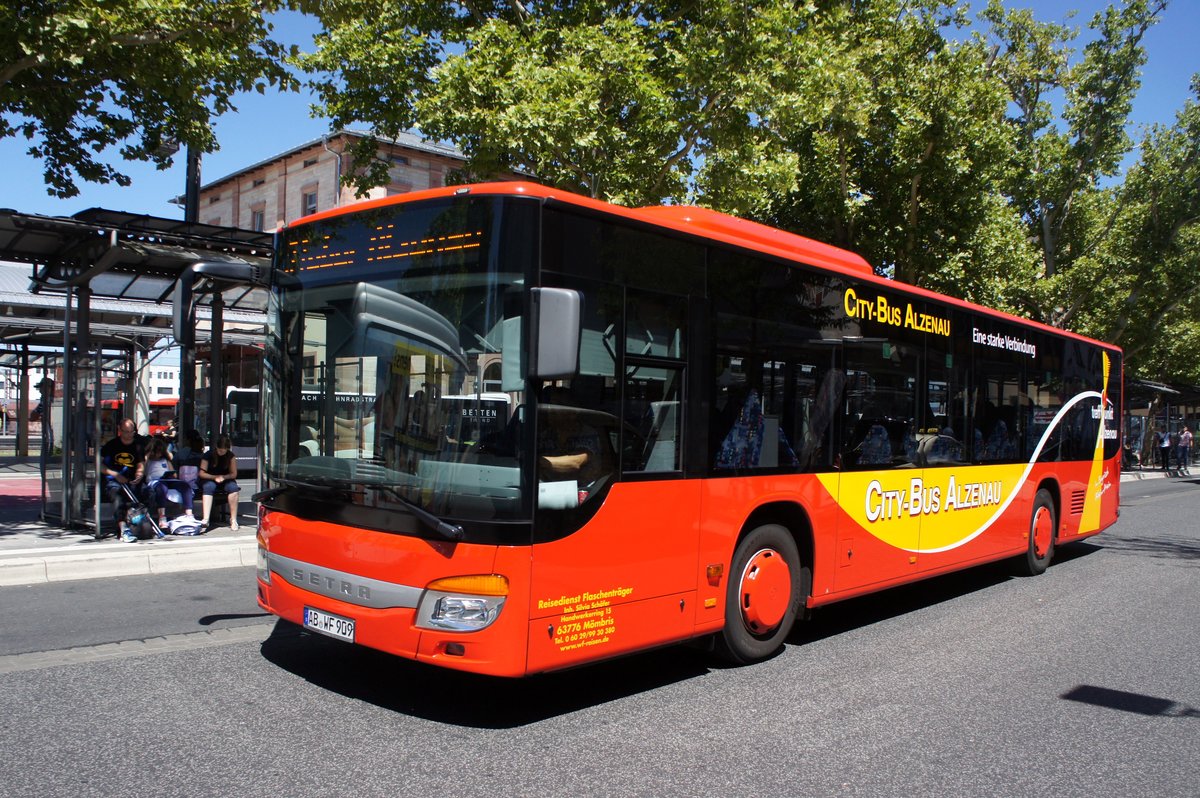 Bus Aschaffenburg / Verkehrsgemeinschaft am Bayerischen Untermain (VAB): Setra S 415 NF von WF-Reisen / Omnibus-Reisedienst Winfried Flaschenträger, aufgenommen Anfang Juli 2018 am Hauptbahnhof in Aschaffenburg.