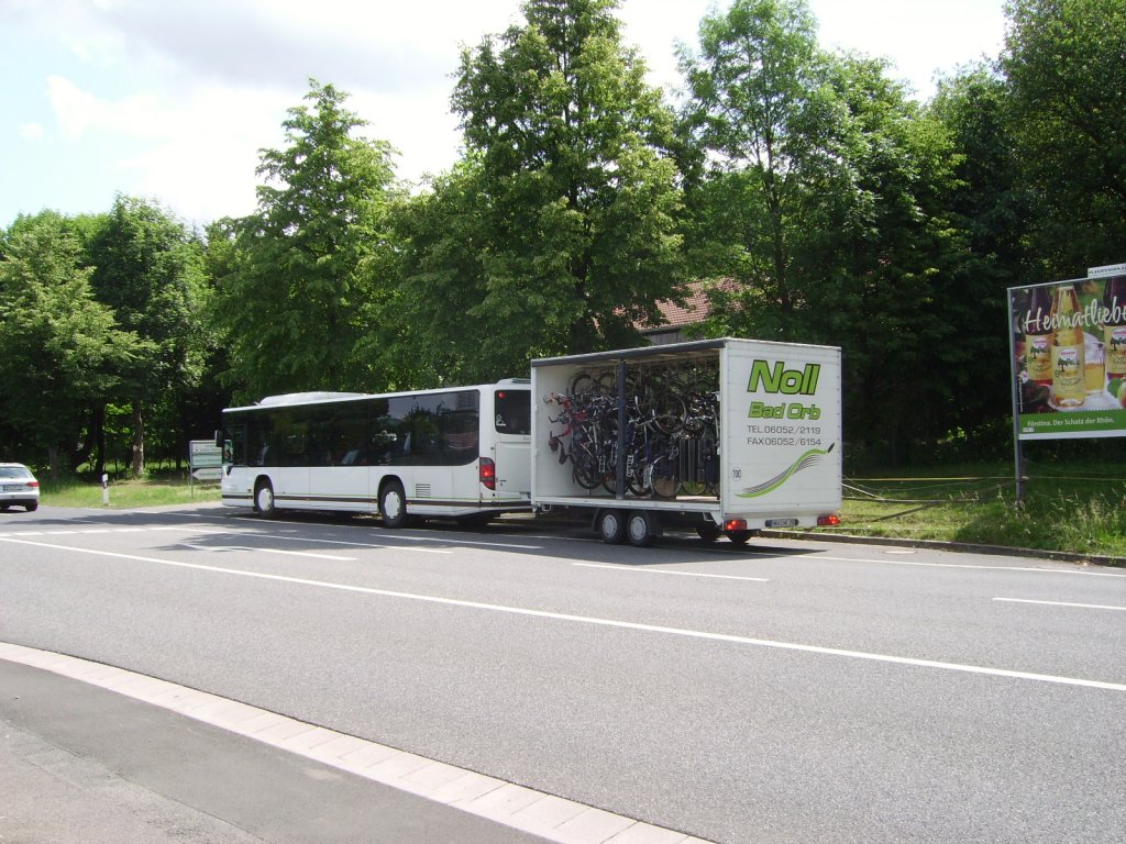 Ein Setra von Peter von Orb in Herchenhain am 12.06.11 mit Fahrrad Anhänger als Vulkanexpress auf der Linie 95