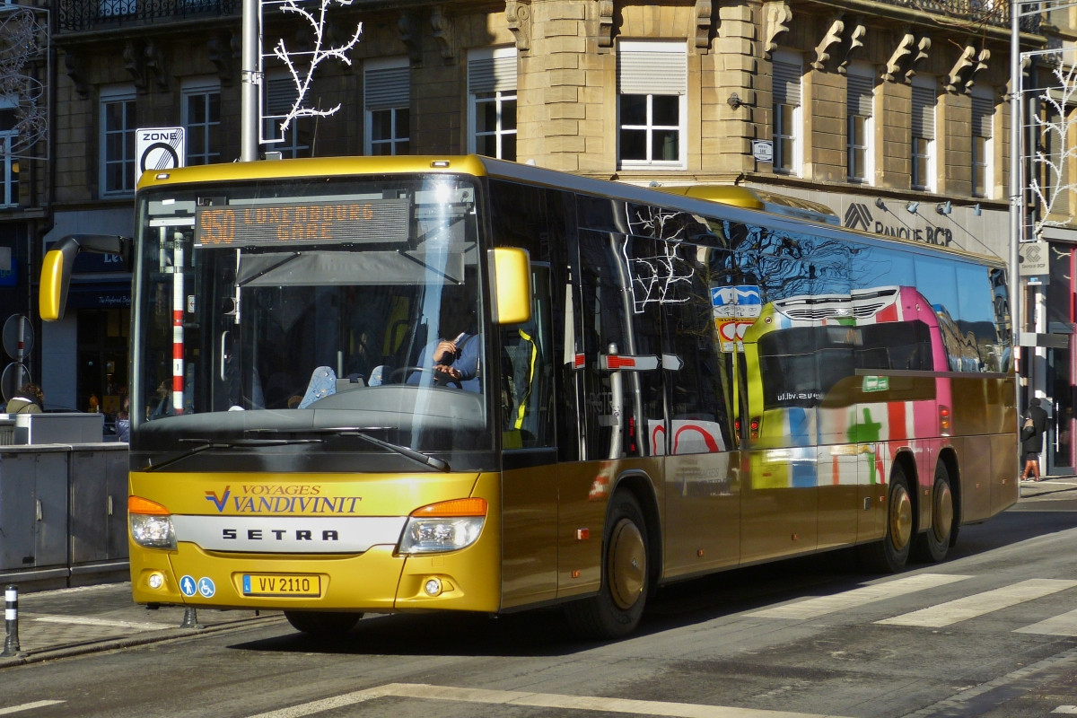 VV 2110, Setra S 418 LE von Voyages Vandivinit, aufgenommen in der Stadt Luxemburg.