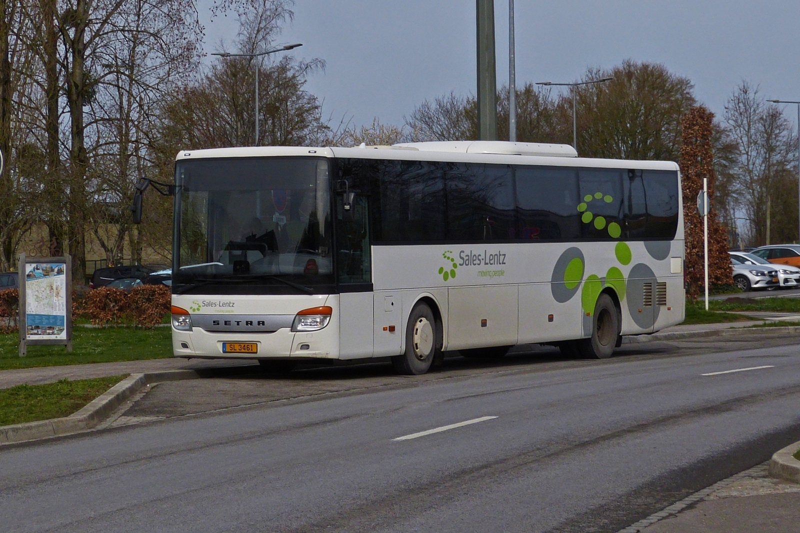 SL 3461, Setra S 415 UL von Sales Lentz steht in einer Parkbucht bei der Bushaltestelle Redange sur Attert Lyceé. 03.2023