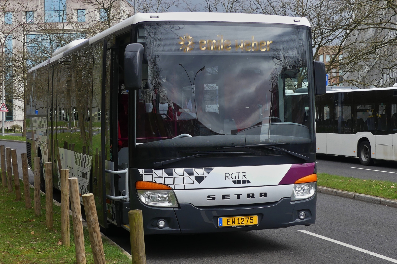 EW 1275, Setra S416 LE, von Voyages Emile Weber, steht am Straßenrand in der Stadt Luxemburg. 03.2024