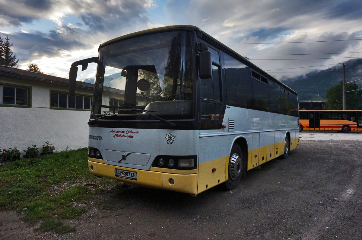 Volvo B10-400 von Autoreisen Edelweiß, geparkt nahe des Bahnhofs Greifenburg-Weißensee.