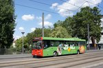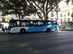 Nach einer regnerischen Nacht spiegelt sich der Volvo B10-400 von Autoreisen Edelweiß, in einer der noch übrig geblieben Pfützen.