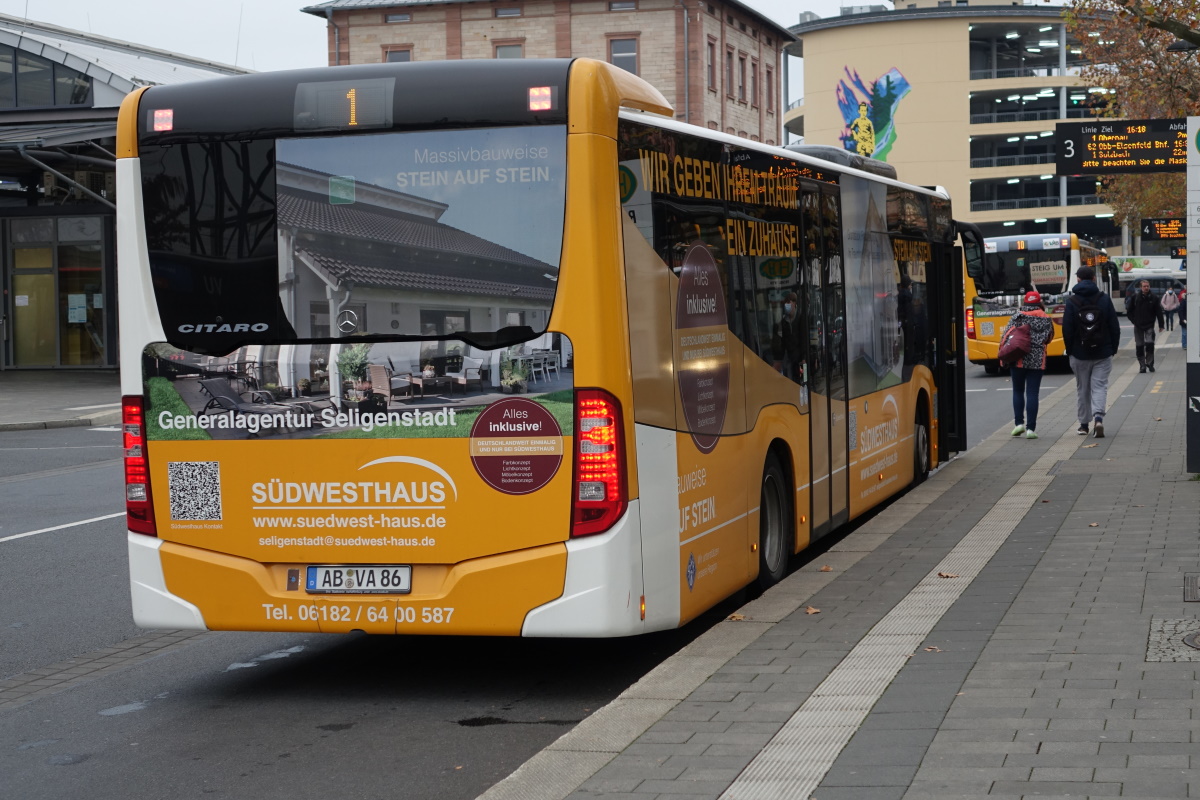 Stadtwerke Aschaffenburg / Wagen 186 (AB-VA 86) / Aschaffenburg, Hauptbahnhof/ROB / Mercedes-Benz O 530 C2 / Aufnahemdatum: 11.11.2020 / Werbung: Südwesthaus