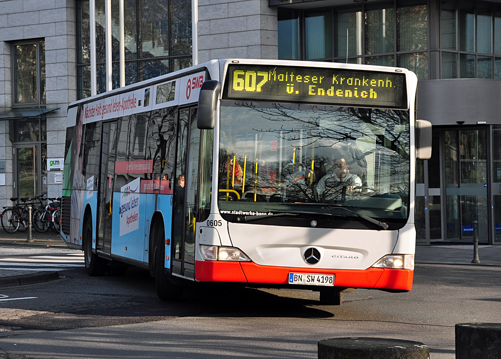 MB Citaro O 530 NL III der SWB, BN-SW 4198, in Kurvenschräglage am Hbf Bonn - 27.01.2012