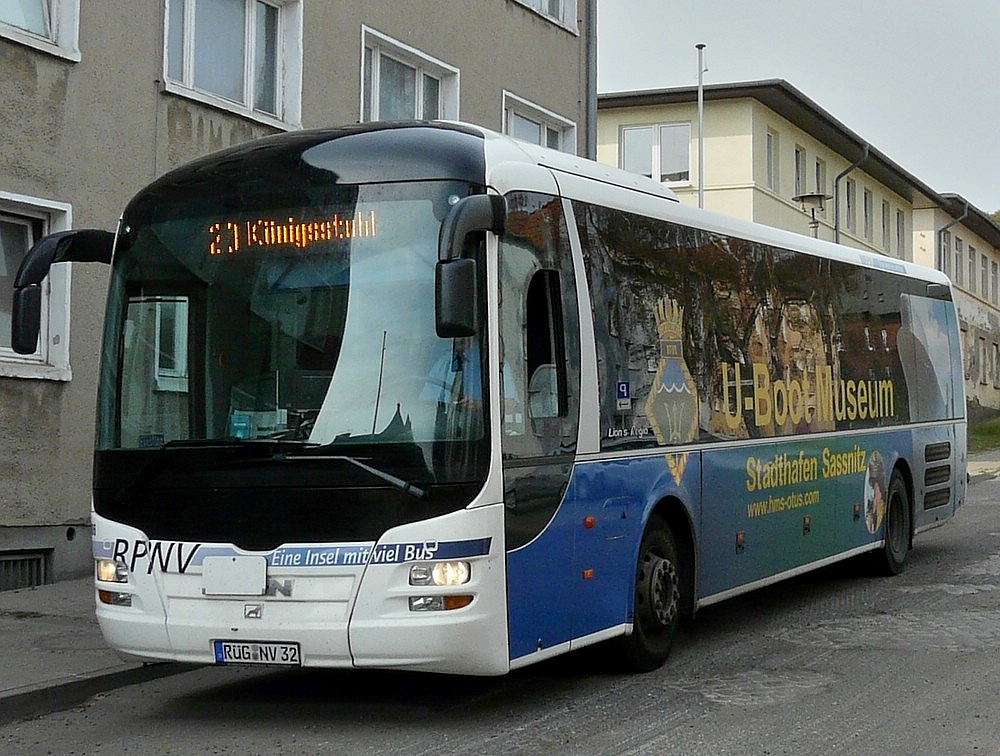 Unterwegs vom Bahnhof Sassnitz zum Königsstuhl ist dieser MAN Bus, mit der Werbung für das U-Bootmuseum im Hafen von Sassnitz. 26.09.11 De Rond Hans und Jeanny