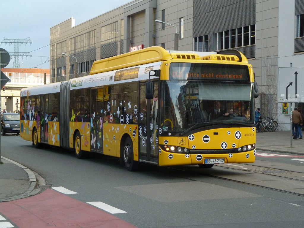 Der Solaris Hybrid 460 001-4 erreicht gleich die Endstadion in Löbtau. 10.01.2012