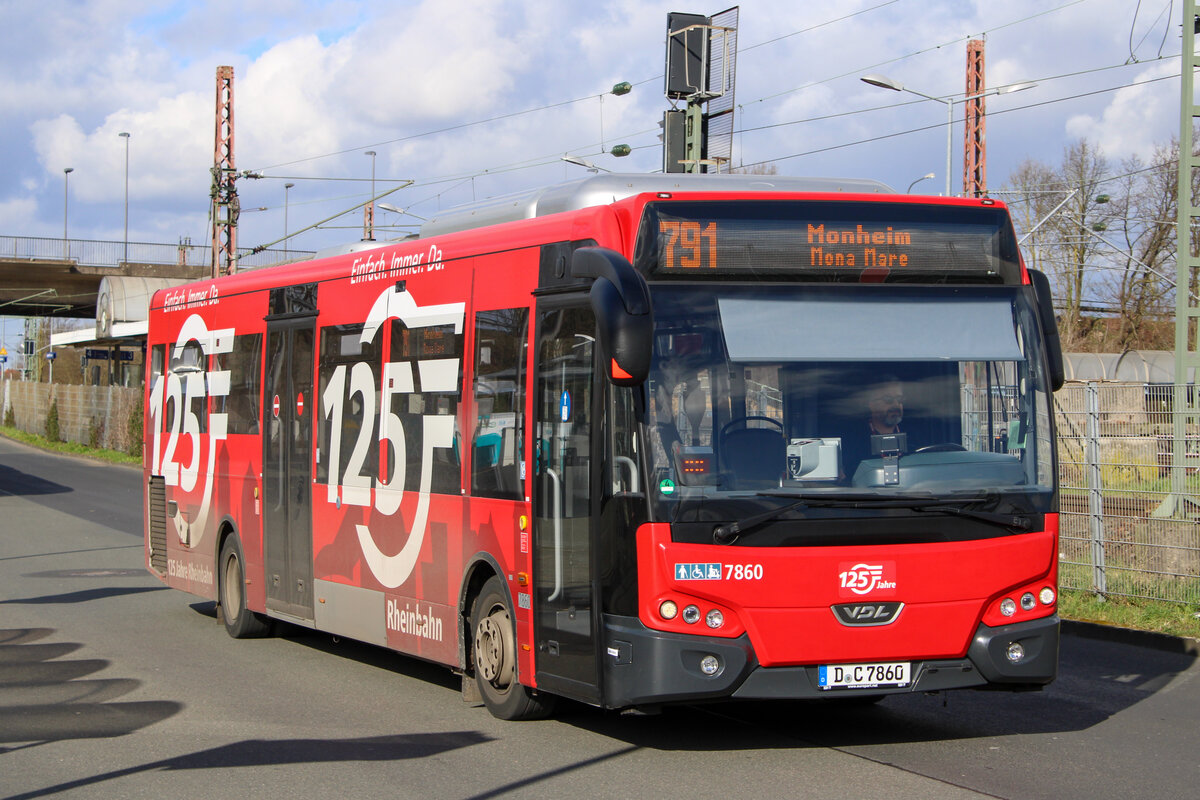 Rheinbahn 7860 "125 Jahre Rheinbahn" auf der Linie 791 nach Monheim, 19.