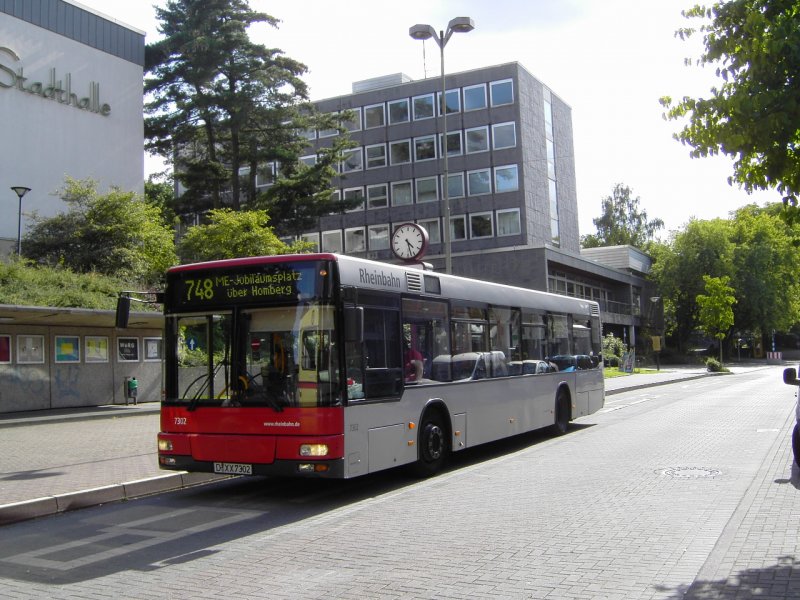 MAN NL 223 der Rheinbahn AG Düsseldorf (Wagennumer 7302, Baujahr 1999), im Einsatz als Linie 748 (Mettmann, Jubiläumsplatz - Ratingen-Homberg - Wülfrath, Stadtmitte).
