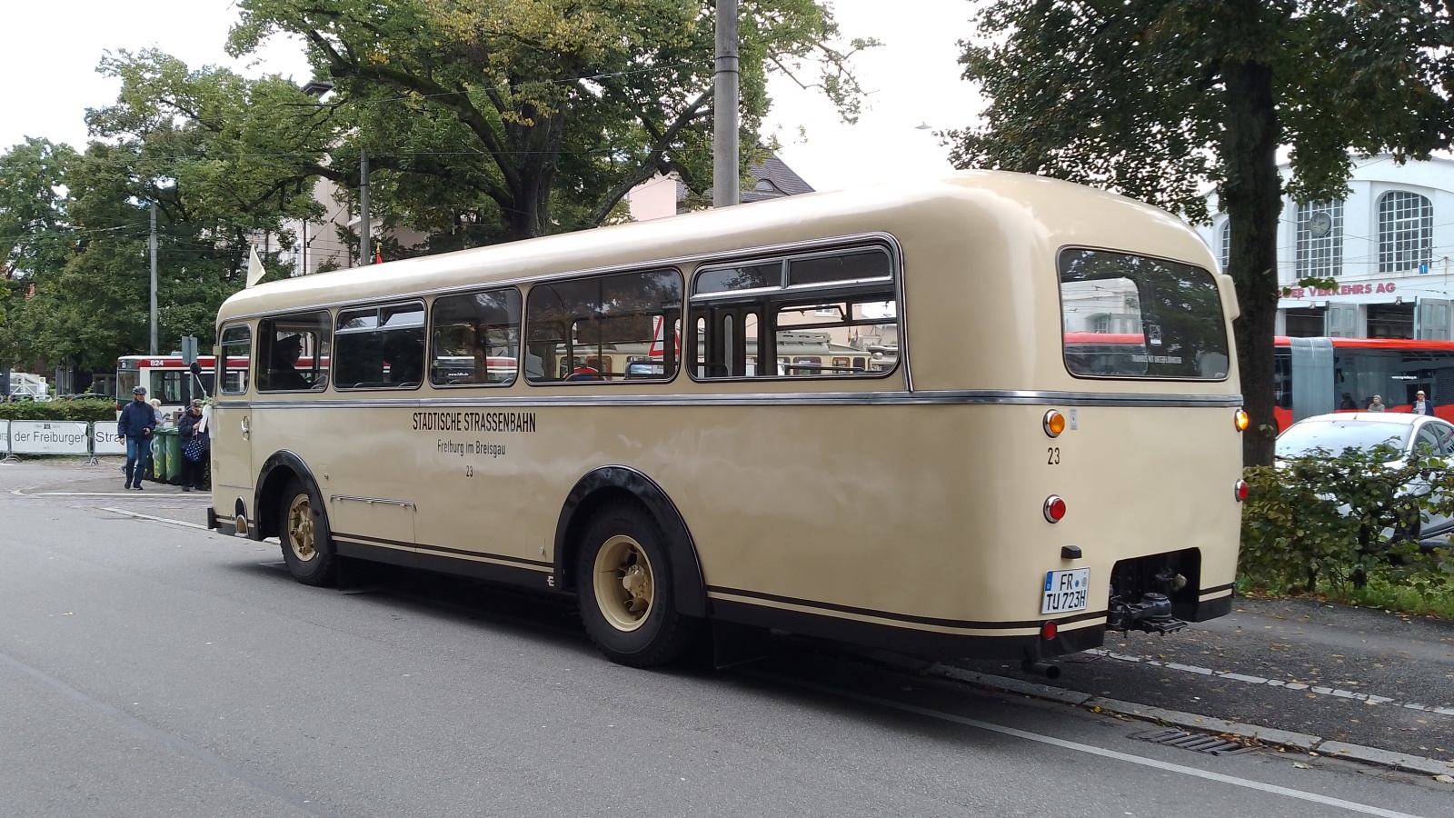 100 Jahre Bus: Jubiläumsfest im historischen Betriebshof in Freiburg im Breisgau, Büssing TU7 O23 Baujahr 1956  VAG  am 27.09.2025. Die Veranstaltung befindet sich am 27. und 28.09.2025 von jeweils 10 bis 18 Uhr öffnet der historische Betriebshof Süd in der Urachstr. 5 (Haltestelle Lorettostraße) seine Tore.