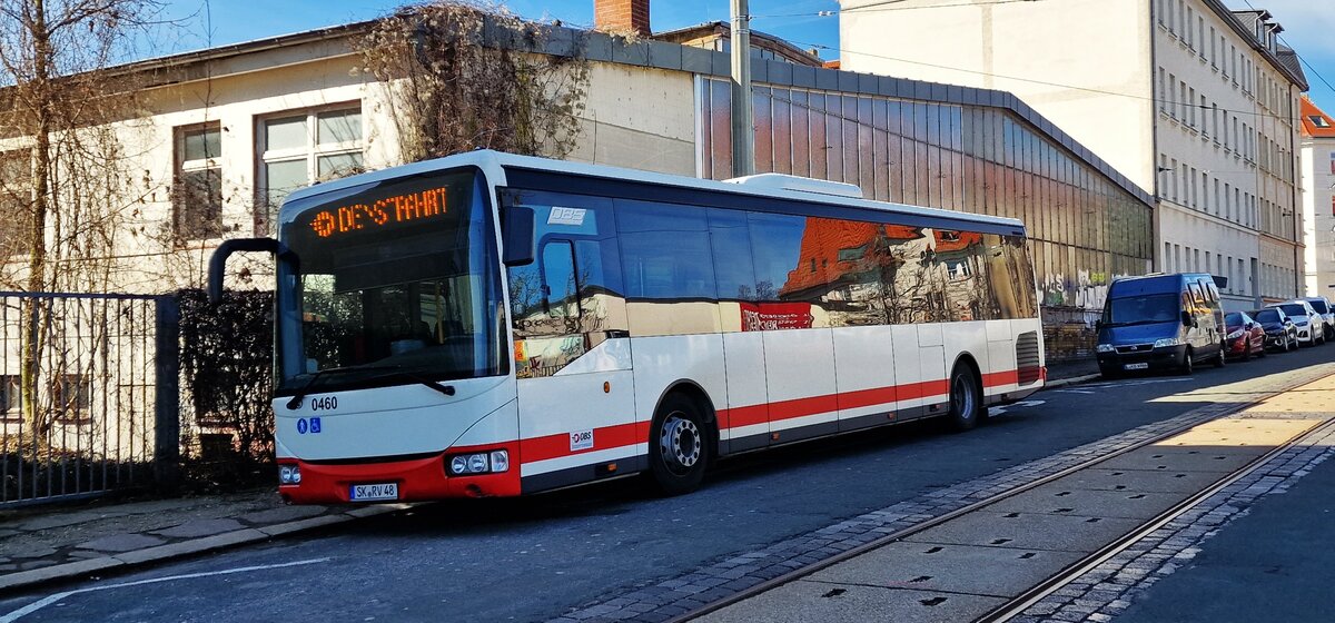 Hier steht "Irisbus Crossway LE 12.8M" als "Dienstfahrt" wartend auf seine Abfahrt als Linie 190 in Richtung Radefeld an der Haltestelle "Möckern" in Leipzig. Nicht wunder das, dass Bild schräg aussieht, aber jeder der diese Ecke kennt weiß das es in der Straße Berg abwärts geht.