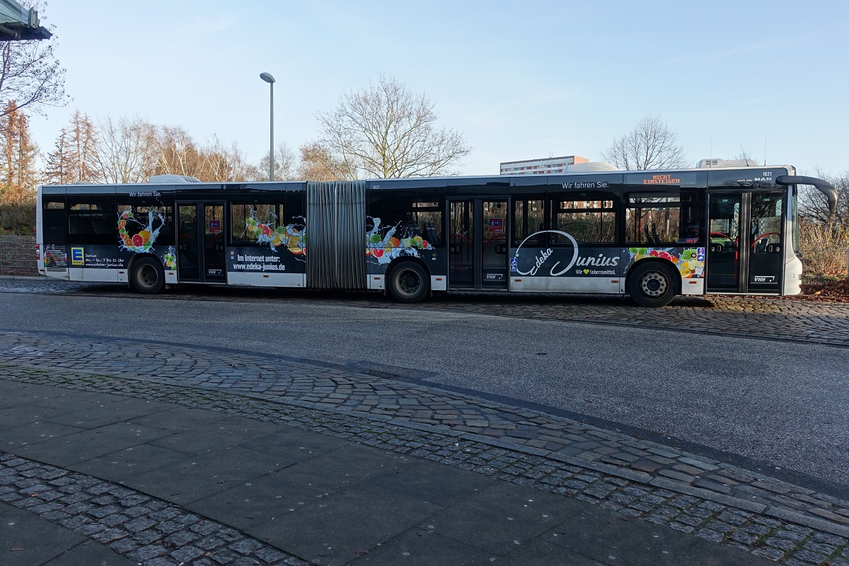 VHH 1621 (HH-V 9621) am 19.12.2019, Pause am U-Bahnhof Steinfurther Allee, MAN NG 323 Lion´s City G, 3-türig, EZ 2016 /
