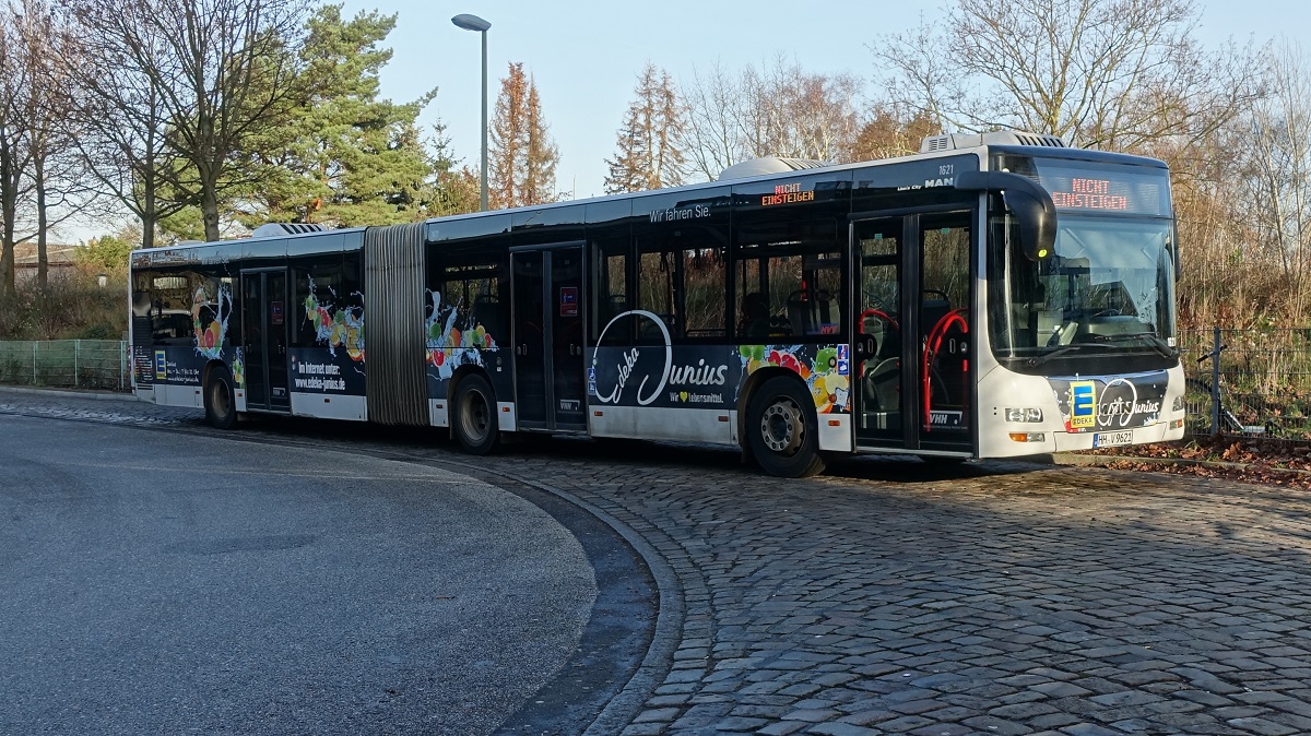 VHH 1621 (HH-V 9621) am 19.12.2019, Pause am U-Bahnhof Steinfurther Allee, MAN NG 323 Lion´s City G, 3-türig, EZ 2016 /