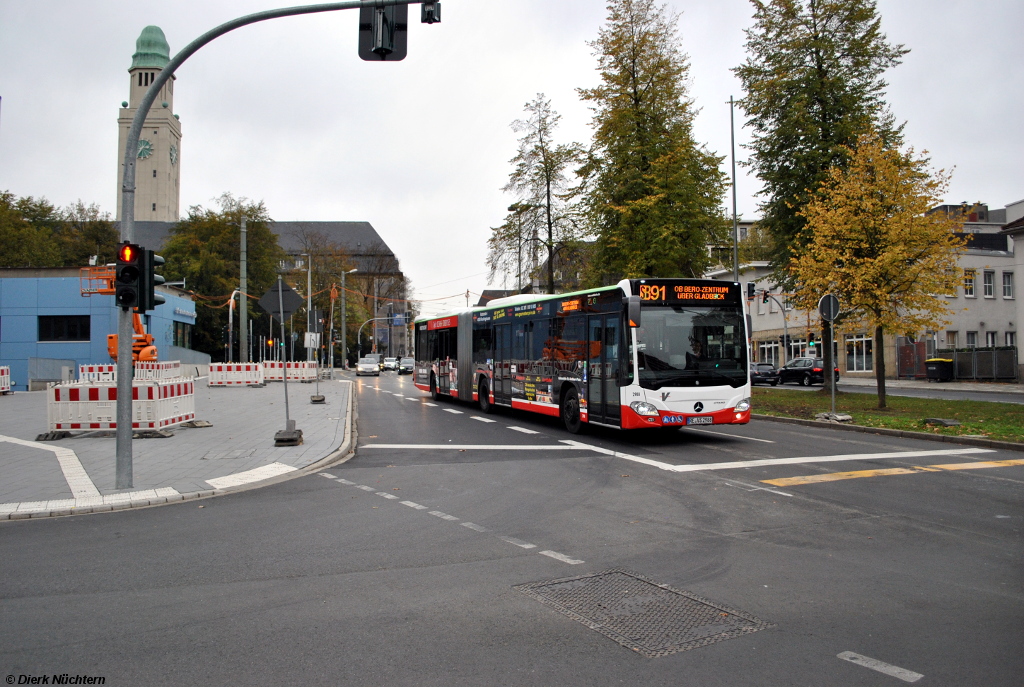 MAN Bus der Vestischen auf der Linie 234 in der Stadtmitte Herten vor dem ehemaligen Karstadt Kaufhaus bei einer kleinen Pause vor der Fahrt nach Gelsenkirchen-Hassel. Ein Foto vom Frühjahr 2006, ca. Ende April. "Bunte" Busse sind bei der Vestischen nicht ungewöhnlich. Einige Fahrzeuge fahren in der klassichen rotweißen Lackierung ohne Werbung, andere werden voll als Werbeträger genutzt, aber gelb und grün lackiert ist doch schon etwas selten.